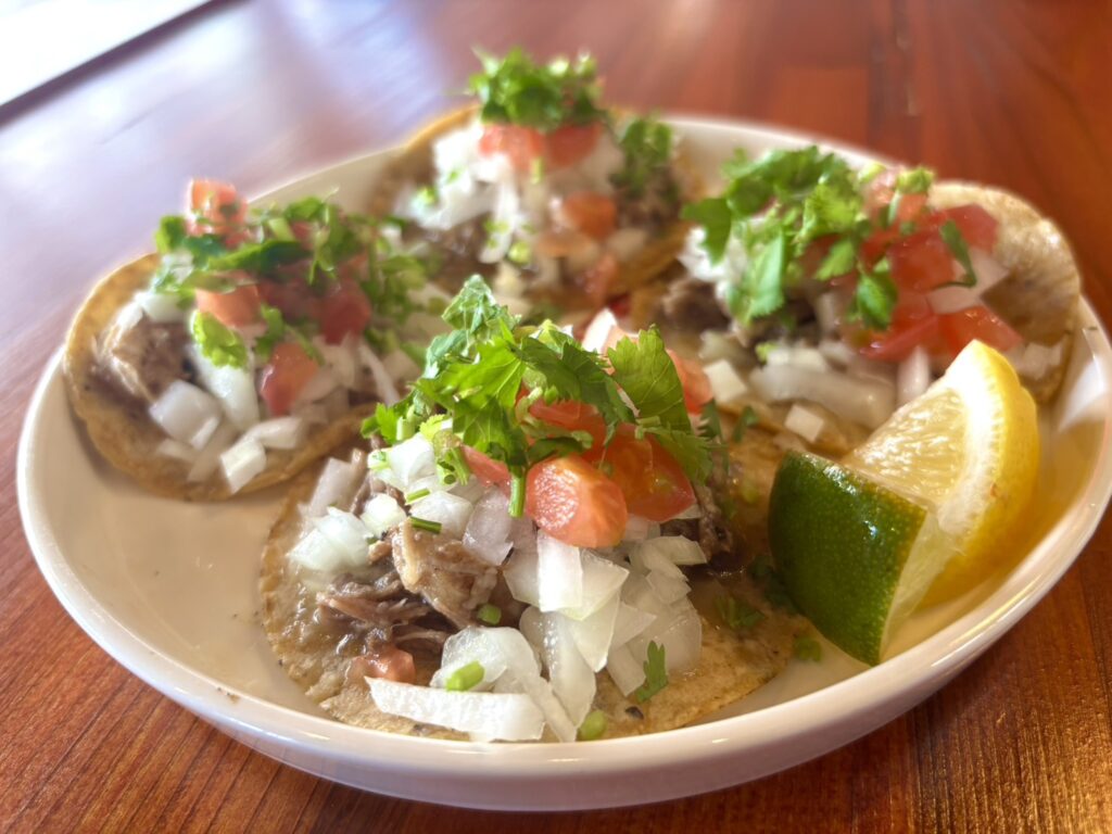 おすすめはビーフタコス(左)とチキンタコス(右)