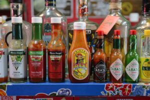 カウンターにはさまざまな種類のホットソースが用意されており、自分好みの辛さに調整できる事も嬉しいポイント。